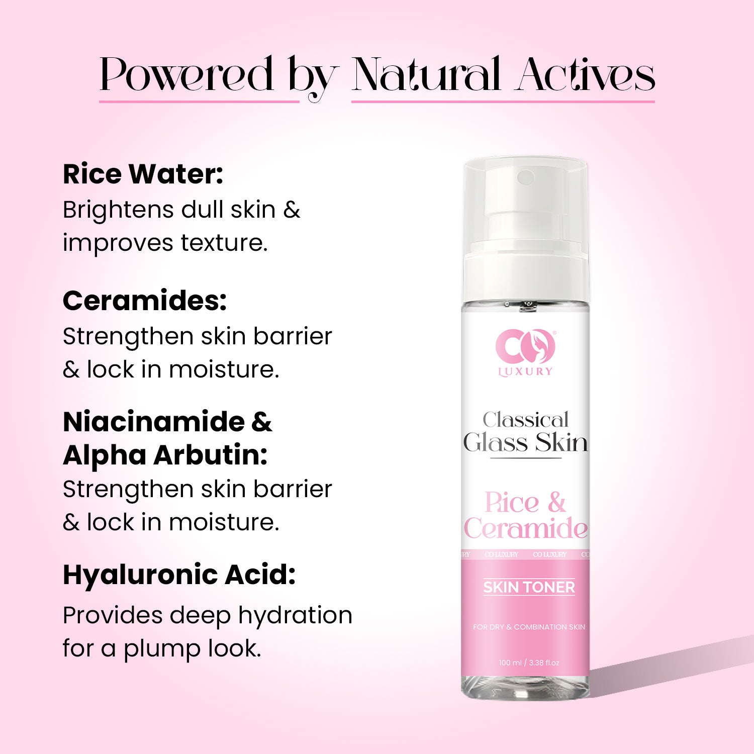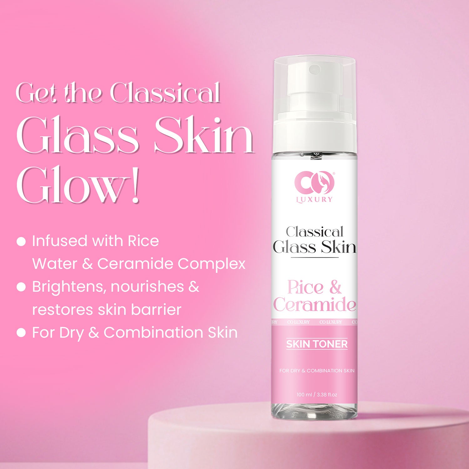 Achieve luminous “glass skin” with the CO LUXURY Classical Glass Skin Rice & Ceramide Toner. This gentle, alcohol-free toner is enriched with rice extract to brighten dull skin and ceramides to strengthen your skin barrier. It helps maintain moisture balance, minimizes the appearance of pores, and prepares your skin for better absorption of serums and moisturizers.