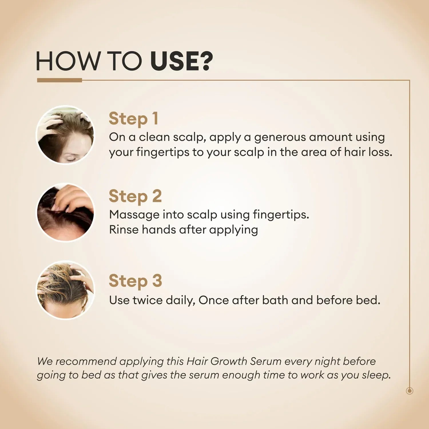 Gently massage over scalp using fingertips. This hair serum works only on your hair roots, so applying to your hair strands is not required.
