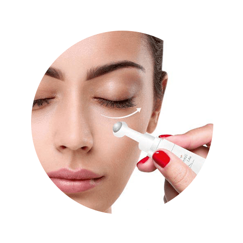 Apply the serum in circular motion, directly with the help of attached roller and gently massage the eye-contour area with roll-on.